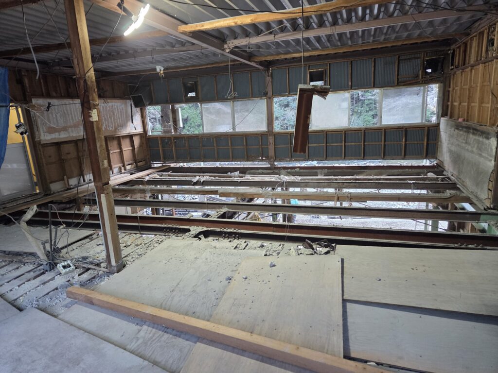 令和8年度の「広見ヤナ」の一大事業として、1階・2階の厨房と、1階倉庫等の改修工事が現在進行中です。